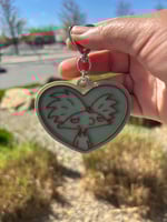 Soft but chaotic energy in one piece. This custom 3D printed heart keychain features a bold angel design wrapped in a chunky heart frame — giving cute, edgy, and a little unhinged all at once.Each piece is printed with layered detail that pops, making the design stand out with a raised, textured finish. Finished with a heart-shaped clasp so you can clip it onto your keys, bag, or wherever needs a little attitude.✨ Details: